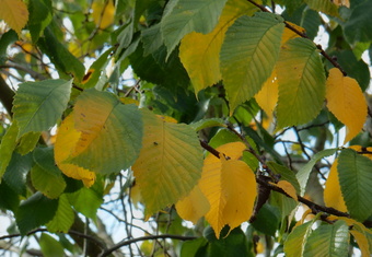Das Foto gehört zur Serie "Blätter von Laubbäumen". Es zeigt den Ast einer Ulme mit Blättern im Herbst. Das Bild ist unter CC0 lizenziert und kann somit frei verwendet werden.