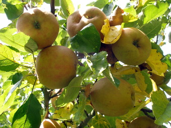 Das Foto gehört zur Serie Obstbäume. Es zeigt einen Apfelbaum der Sorte "Schöner aus Boskoop", in Deutschland kurz Boskop genannt. Bokop-Äpfel sind Lageräpfel bzw. Winteräpfel. Das Bild ist unter CC0 lizenziert und kann somit frei verwendet werden.