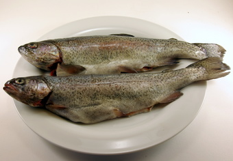 Das Foto gehört zur Serie "Nahrungsmittel". Es zeigt zwei Forellen. Das Bild ist unter CC0 lizenziert und kann somit frei verwendet werden.