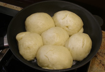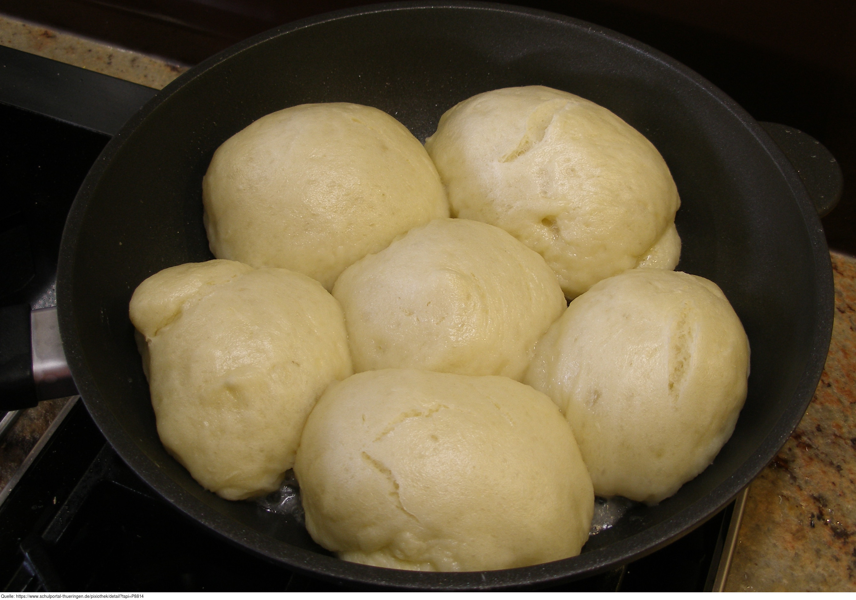 Das Foto gehört zur Serie "Nahrungsmittel". Es zeigt Dampfnudeln. Dampfnudeln sind eine traditionelle Mehlspeise der süddeutschen und österreichischen Küche, eine Zubereitungsvariante von Hefeklößen. Das Bild ist unter CC0 lizenziert und kann somit frei verwendet werden.