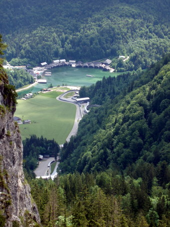 Das Bild gehört zur Serie "Alpen". Es zeigt den Blick vom Berg auf einen Teil vom Königssee, einen langgestreckten Gebirgssee im Landkreis Berchtesgadener Land. Das Bild ist unter CC0 lizenziert und kann somit frei verwendet werden.