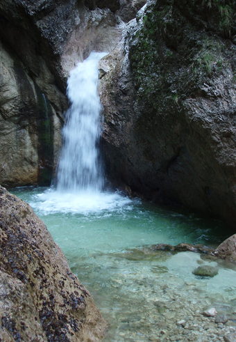Das Bild gehört zur Serie "Alpen". Es zeigt einen Wasserfall in einer Gebirgsklamm. Das Bild ist unter CC0 lizenziert und kann somit frei verwendet werden.