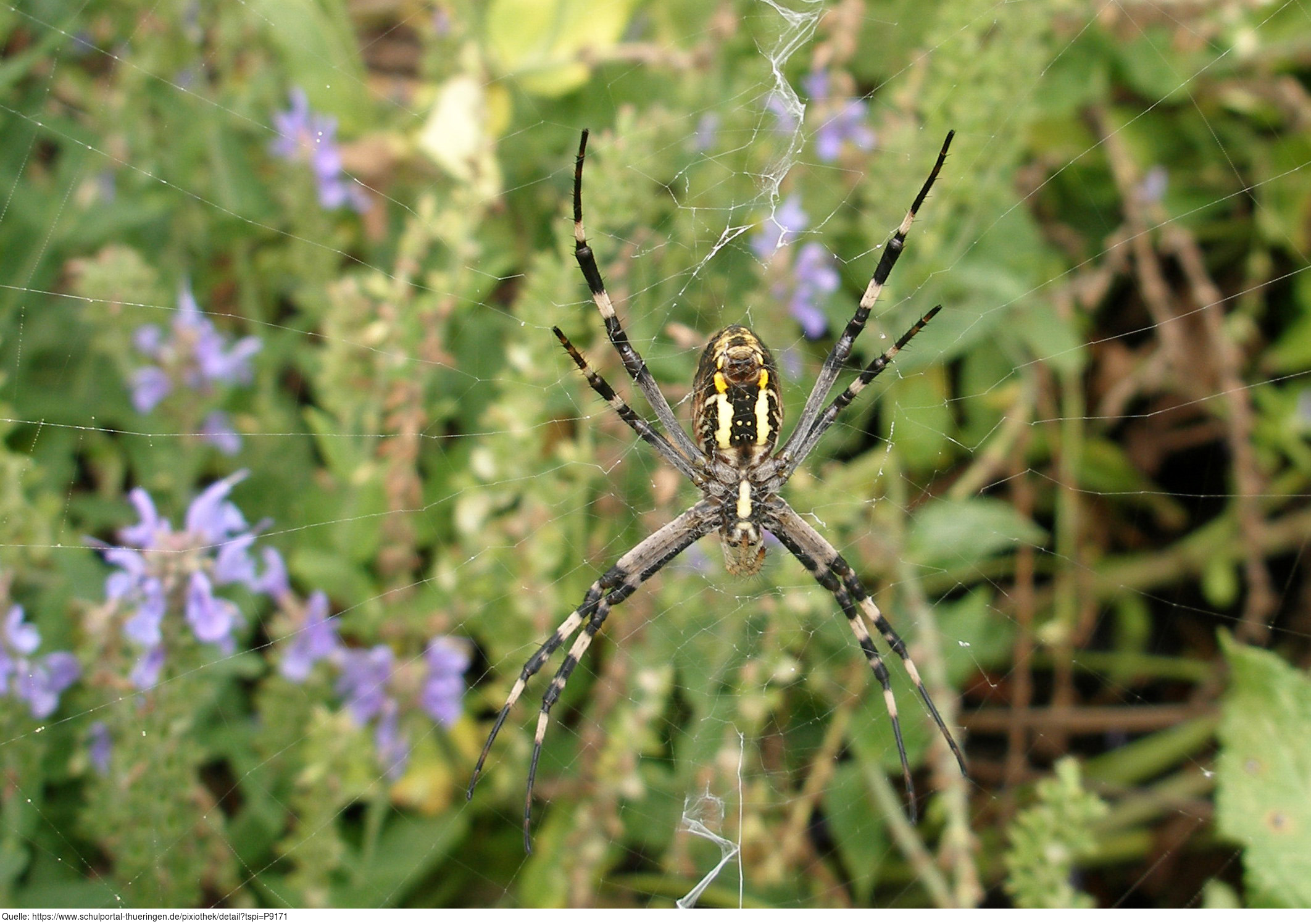Das Foto gehört zur Serie "Gliederfüßer". Es zeigt eine Wespenspinne (Argiope bruennichi). Die Wespenspinne, auch Zebraspinne, Tigerspinne oder Seidenbandspinne genannt, ist eine Spinne aus der Familie der Echten Radnetzspinnen. Das Bild ist unter CC0 lizenziert und kann somit frei verwendet werden.