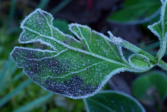 Das Foto gehört zur Serie "Blätter. Es zeigt ein Laubblatt mit Reif nach einer Frostigen Nacht. Das Bild ist unter CC0 lizenziert und kann somit frei verwendet werden.