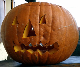 Das Foto zeigt Jack O’Lantern (deutsch: Jack mit der Laterne), eine Laterne aus einem ausgehöhlten Kürbis, in die eine Fratze geschnitten ist. Der Jack-O’Lantern-Brauch geht auf eine Halloween-Tradition irischer Einwanderer in der USA zurück. Das Bild ist unter CC0 lizenziert und kann somit frei verwendet werden.