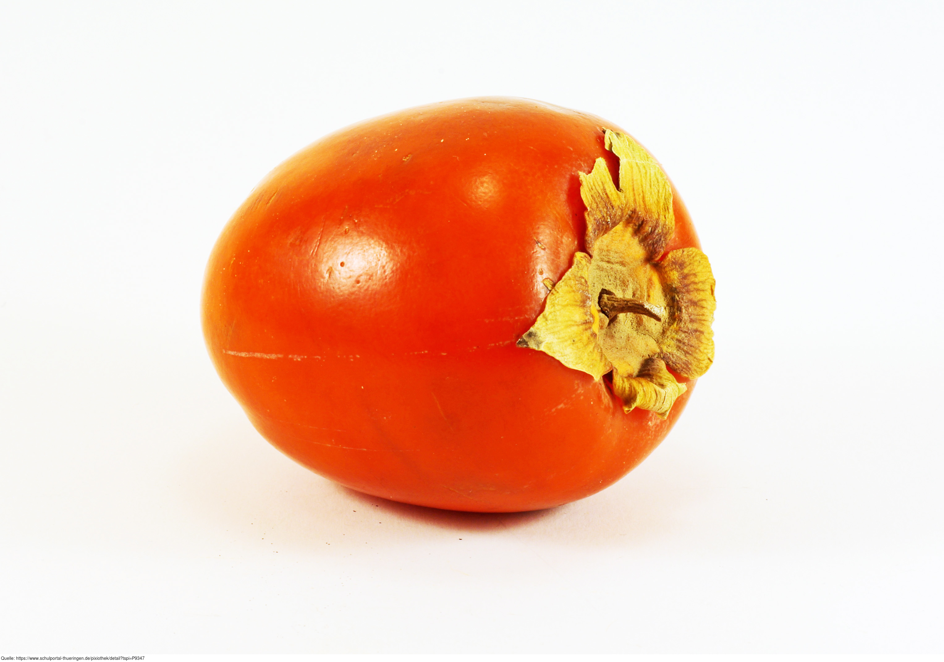 Das Foto gehört zur Serie "Obst". Es zeigt eine Kaki, auch Kakipflaume genannt. Sie ist die süße, orangefarbene, äußerlich einer großen Tomate ähnelnde Frucht des Kakibaums (Diospyros kaki). Das Bild ist unter CC0 lizenziert und kann somit frei verwendet werden.