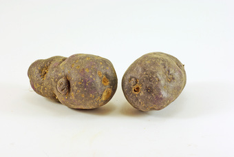 Das Foto gehört zur Serie "Nutzpflanzen". Es zeigt Kartoffeln (Solanum tuberosum) mit violetter Fleischfarbe. Das Bild ist unter CC0 lizenziert und kann somit frei verwendet werden.