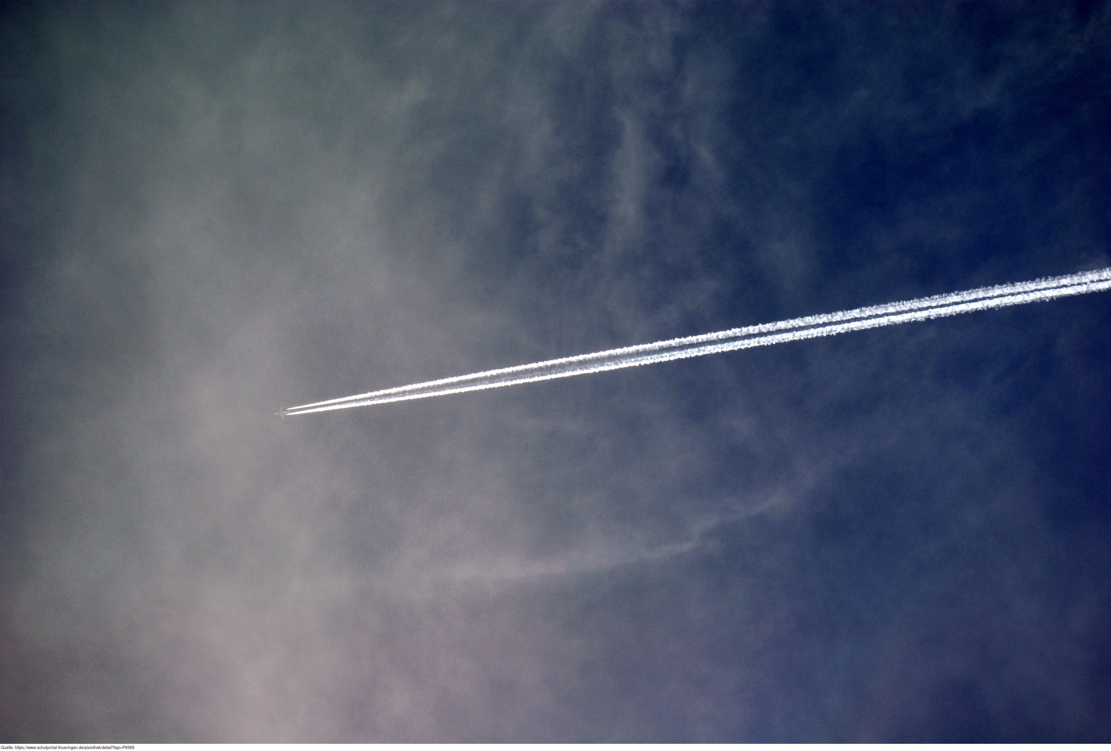 Das Foto gehört zur Serie "Flugzeuge". Es zeigt Kondensstreifen, die durch die Abgase eines Flugzeuges entstehen. Das Bild ist unter CC0 lizenziert und kann somit frei verwendet werden.
