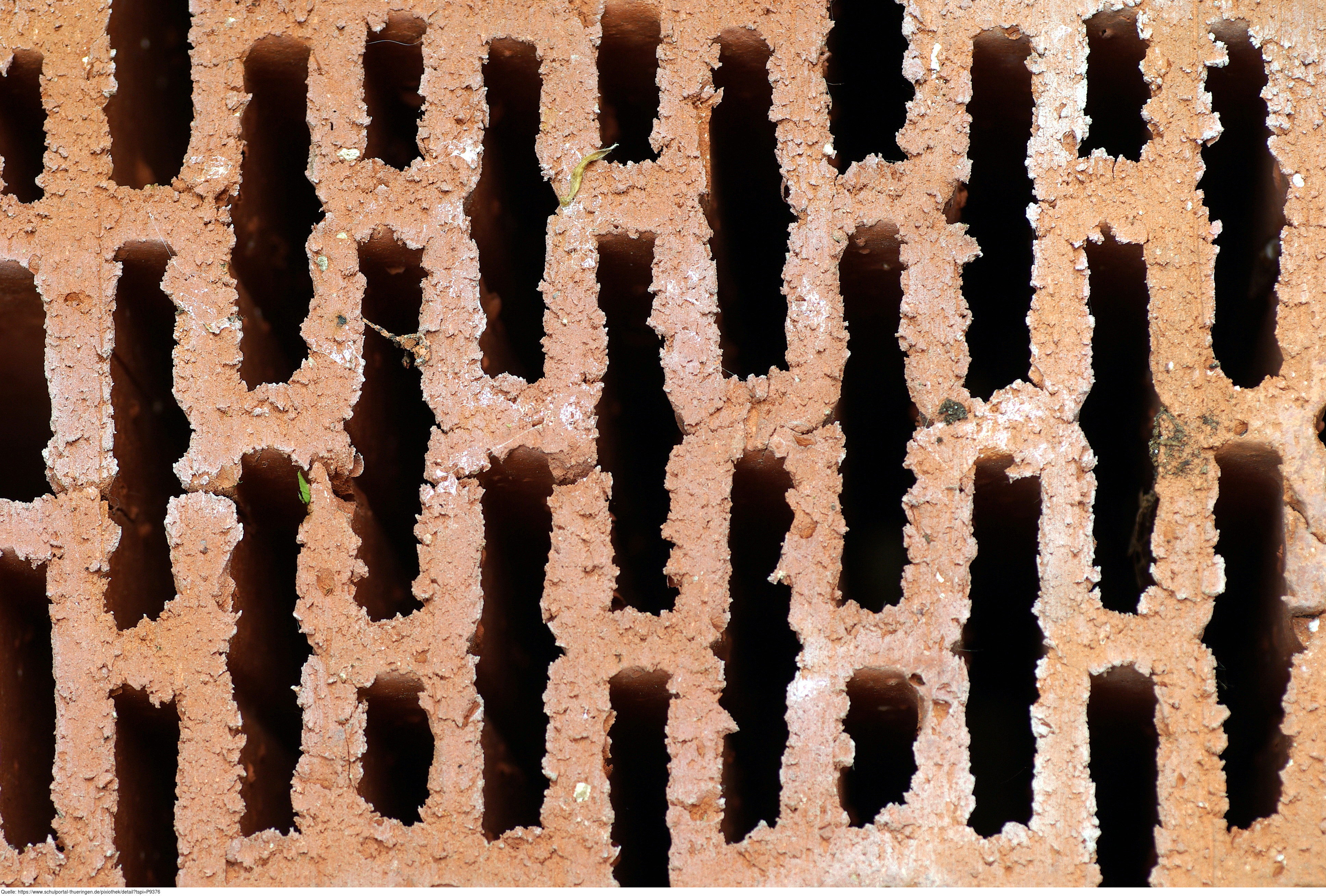 Das Bild gehört zur Serie "Baustoffe". Es zeigt eine Seite vom Lochziegel. Solche Hohlziegel sind Mauerziegel, die zur Verringerung der Wärmeleitfähigkeit und zur Gewichtsminderung Hohlräume haben. Je nach Ausrichtung der Hohlräume unterscheidet man Hochlochziegel und Langlochziegel. Das Bild ist unter CC0 lizenziert und kann somit frei verwendet werden.