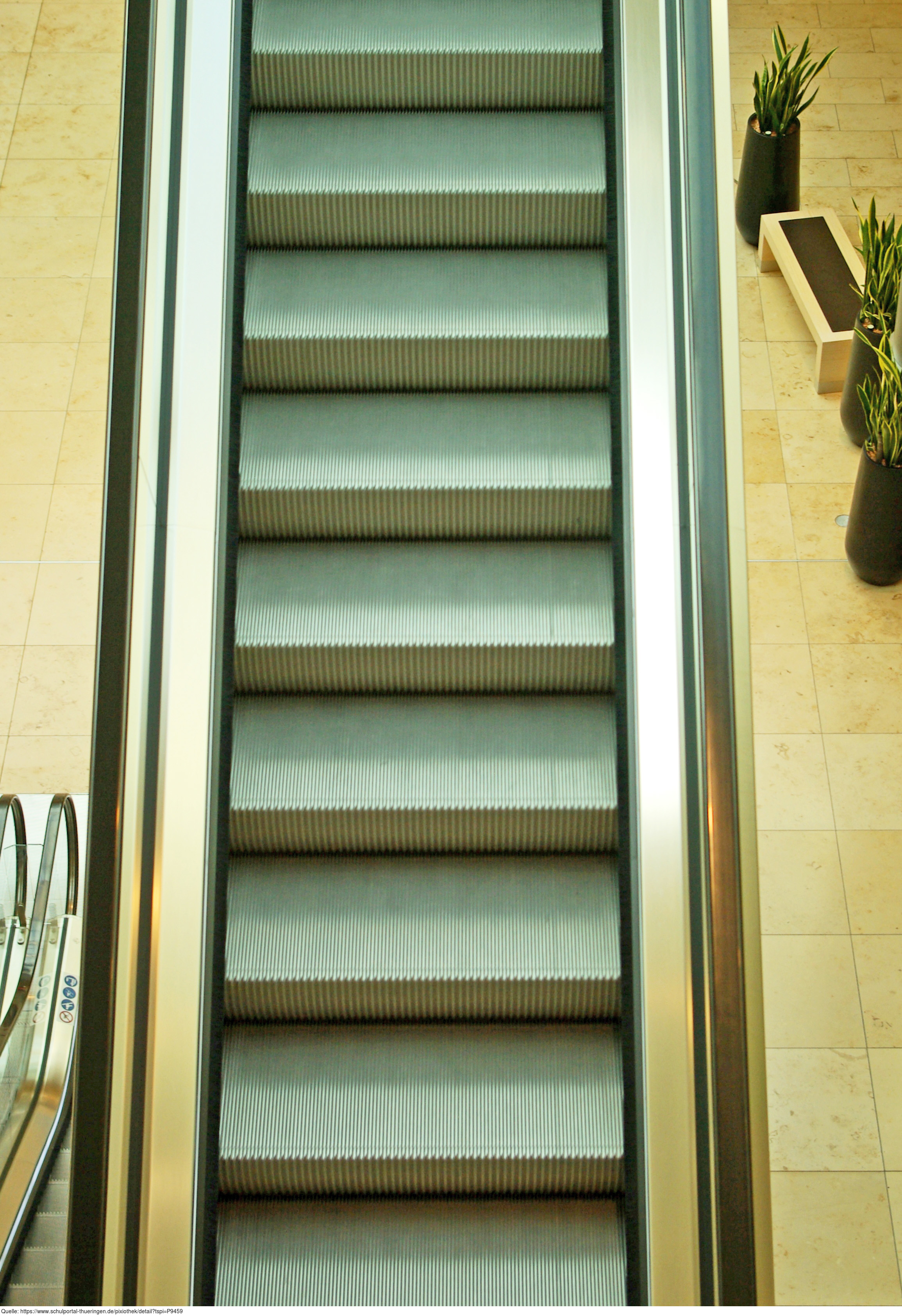 Das Foto zeigt eine Fahrtreppe, im allgemeinen Sprachgebrauch auch Rolltreppe genannt. Das Bild ist unter CC0 lizenziert und kann somit frei verwendet werden.