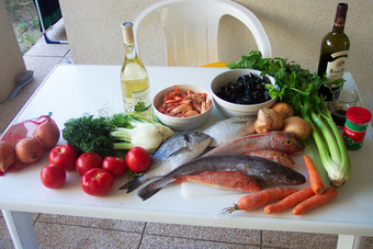 Das Bild gehört zur Serie "Provence und Côte d’Azur". Es zeigt die Zutaten für ein Fischgericht (Bouillabaisse). Das Bild ist unter CC0 lizenziert und kann somit frei verwendet werden.
