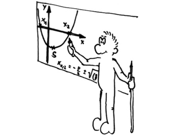Das Foto gehört zur Serie "Paul". Es zeigt Paul an einer Tafel, die Parabel im Koordinatensystem erklärend. Das Bild ist unter CC0 lizenziert und kann somit frei verwendet werden.