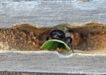 Das Foto gehört zur Serie "Bienen". Es zeigt eine Blattschneiderbiene (Megachile), auch Tapezierbiene genannt. Blattschneiderbienen bauen ihr Nest in Hohlräume, zum Beispiel Totholz, und tapezieren diese mit abgeschnittenen Blattstücken aus. Es gelten die Nutzungsbedingungen der Mediothek und Pixiothek.